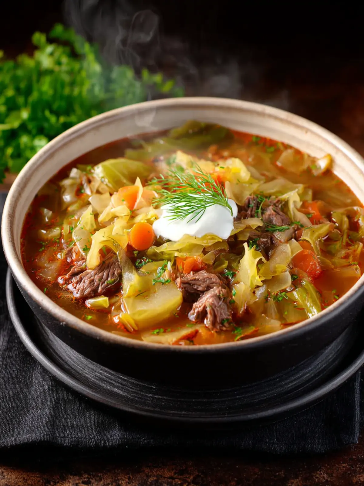 The first spoonful reveals a hearty blend of tender beef, vibrant cabbage, and enriching vegetables, creating a satisfying texture that’s downright addictive. Each bite bursts with flavor, combining the meaty richness of beef with the subtly sweet crunch of cabbage. It’s a warm hug in a bowl, designed to make you feel at home.