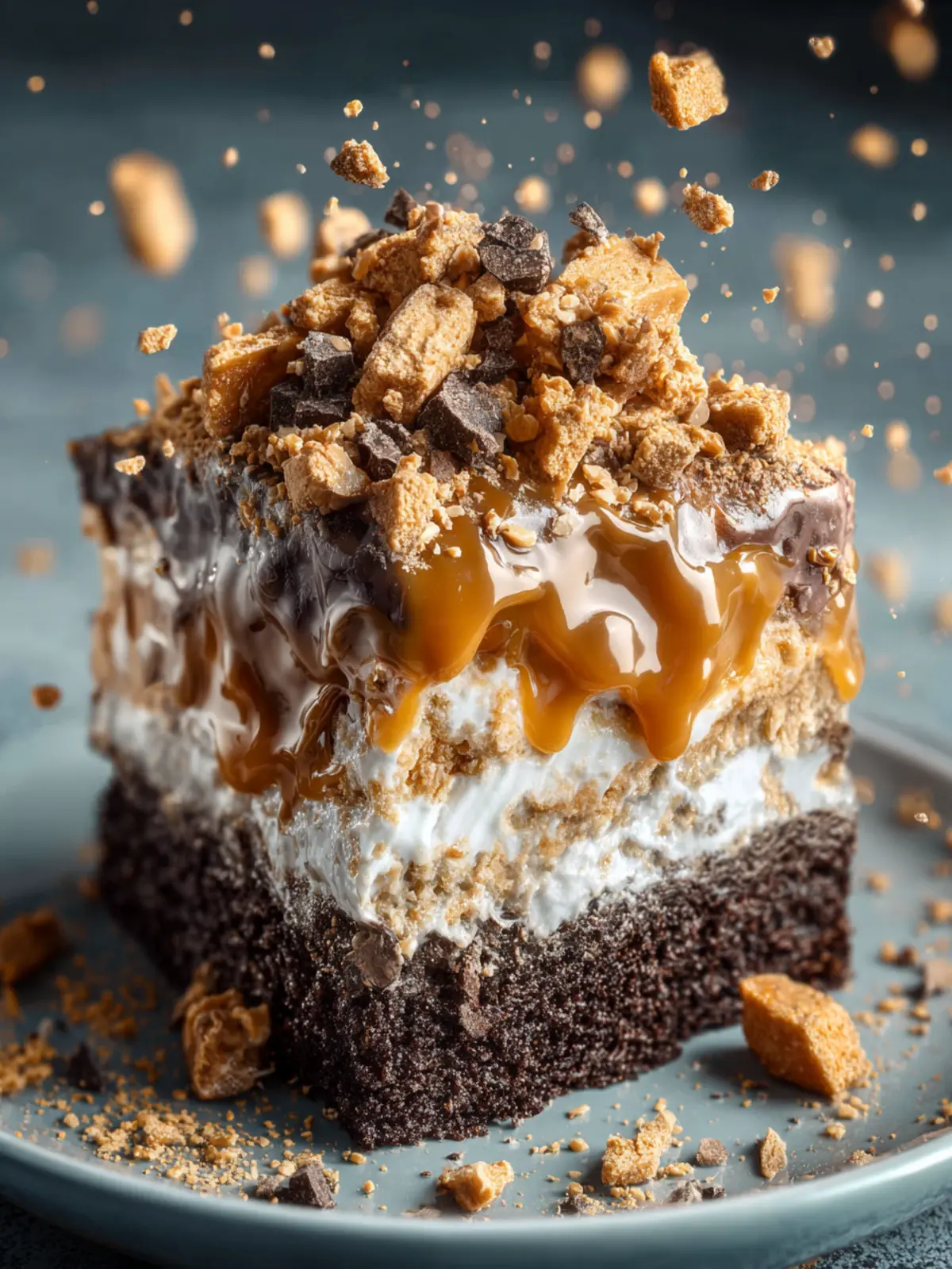 - Crunchy Toppings: Are you ready for that satisfying crunch? The crushed Butterfinger bars sprinkled on top add an irresistible texture and sweetness that elevates this cake to the next level.