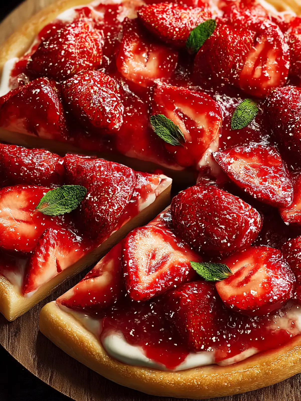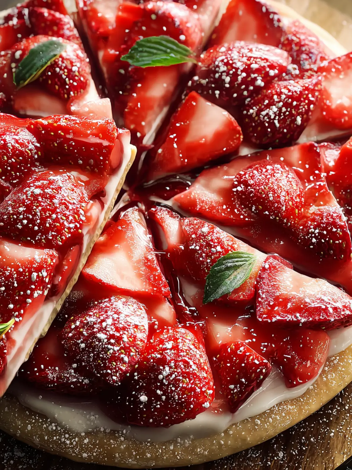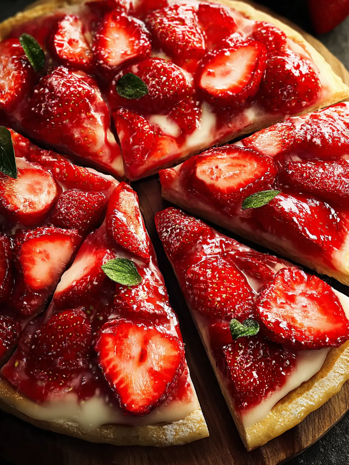 Presentation is key! Slice your strawberry pizza into bite-sized pieces and arrange them on a colorful platter. Garnish with a sprinkle of fresh mint leaves for a pop of color and a touch of freshness that complements the strawberries beautifully.