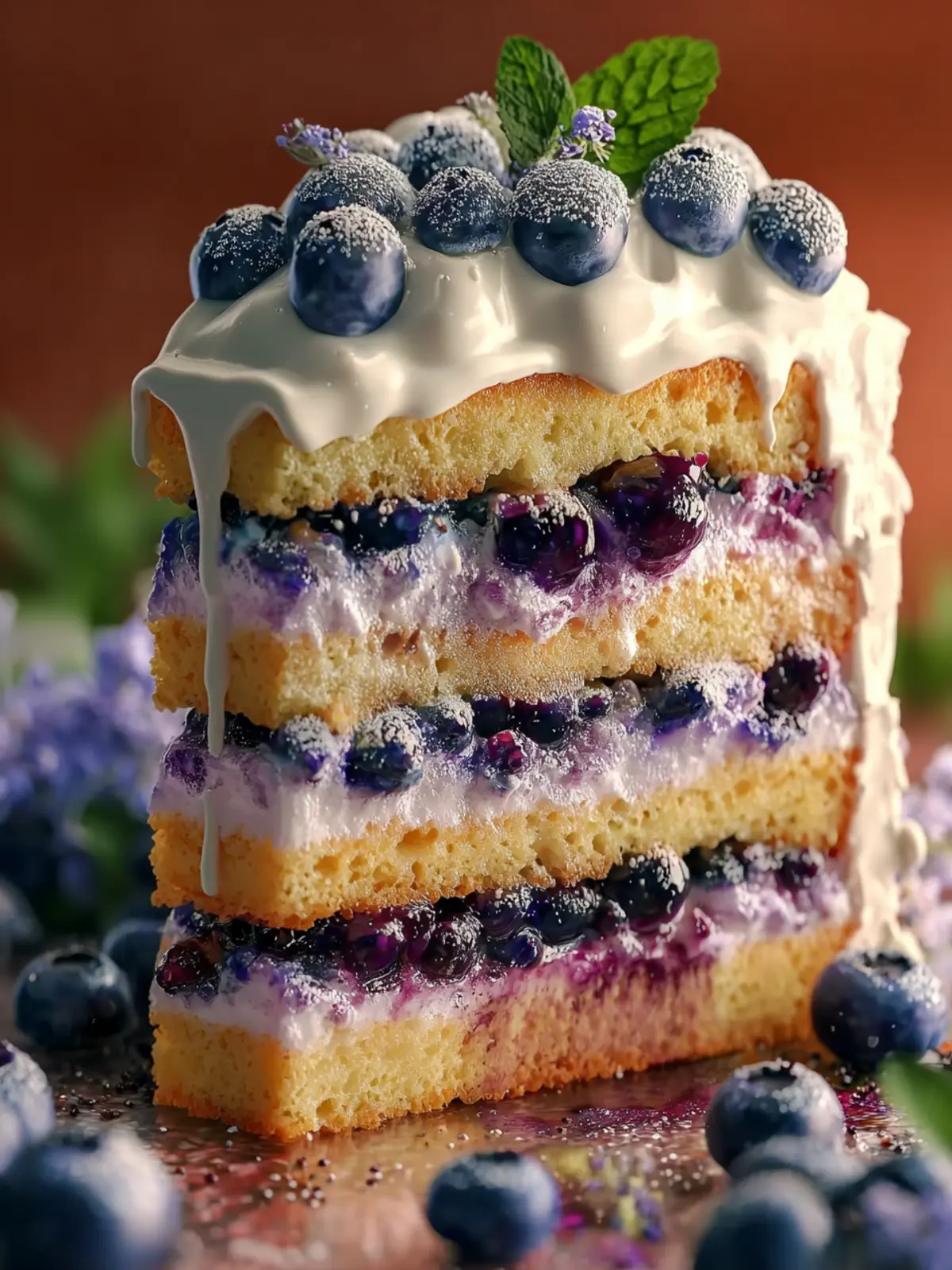 This cake is not just about blueberries; it’s a harmonious blend of textures and flavors. The soft, buttery cake melts in your mouth, while the fresh blueberries add a delightful tartness. Each layer is generously filled with whipped cream, making every bite feel indulgent yet refreshing.