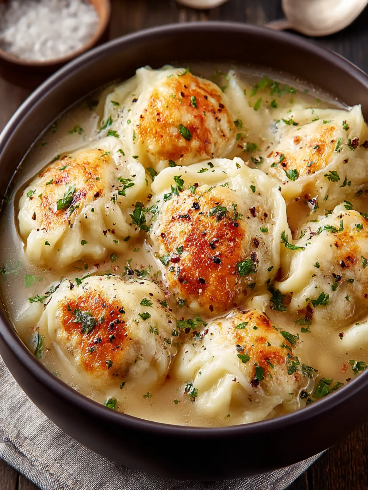 Garnish with Fresh Herbs: Sprinkle chopped parsley or chives on top just before serving. The burst of color and freshness will complement the dumplings beautifully and enhance the overall appeal of your soup.