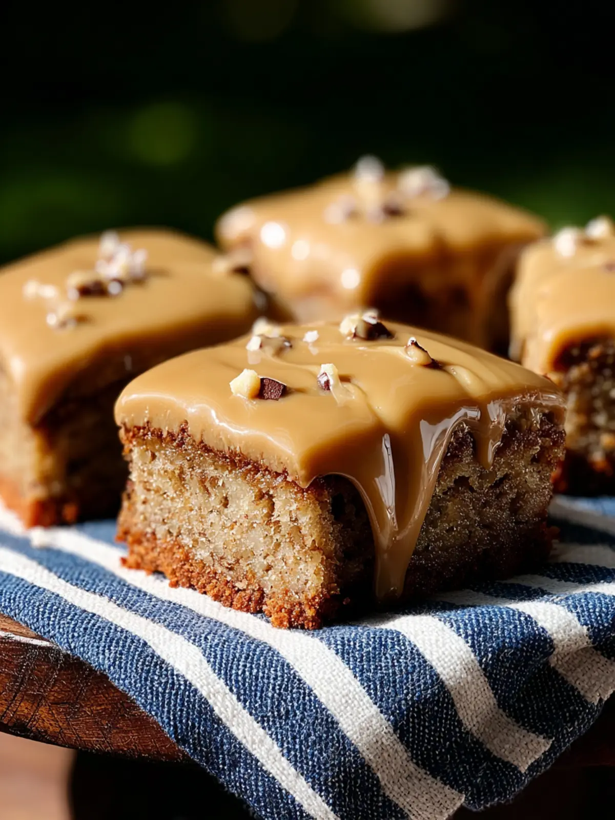 Irresistible Banana Bread Bars with Decadent Salted-Toffee Icing