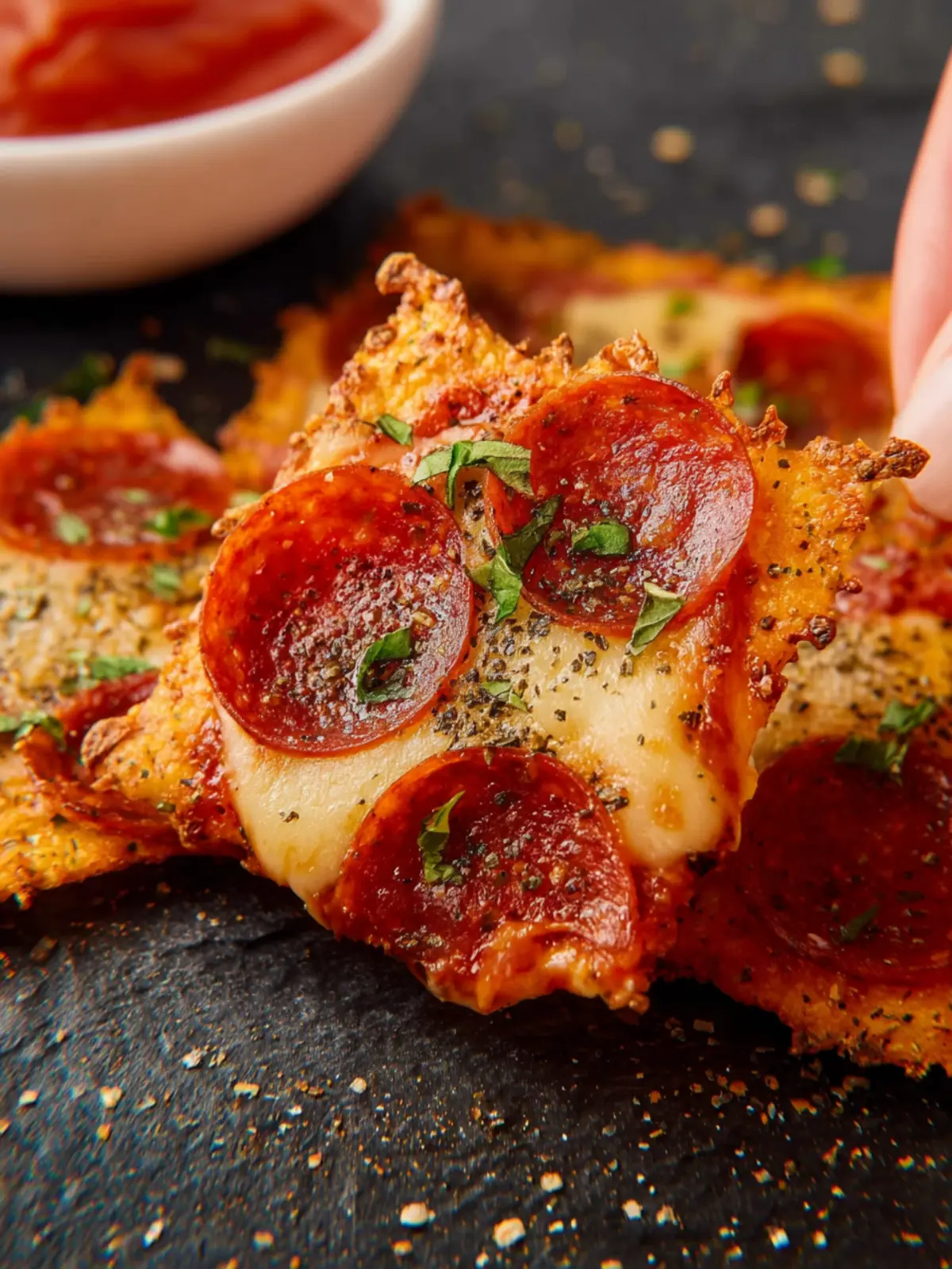 Dipping Sauces: Serve your Keto Pizza Chips with marinara sauce for a classic pizza flavor or mix things up with a spicy buffalo sauce for an extra kick.