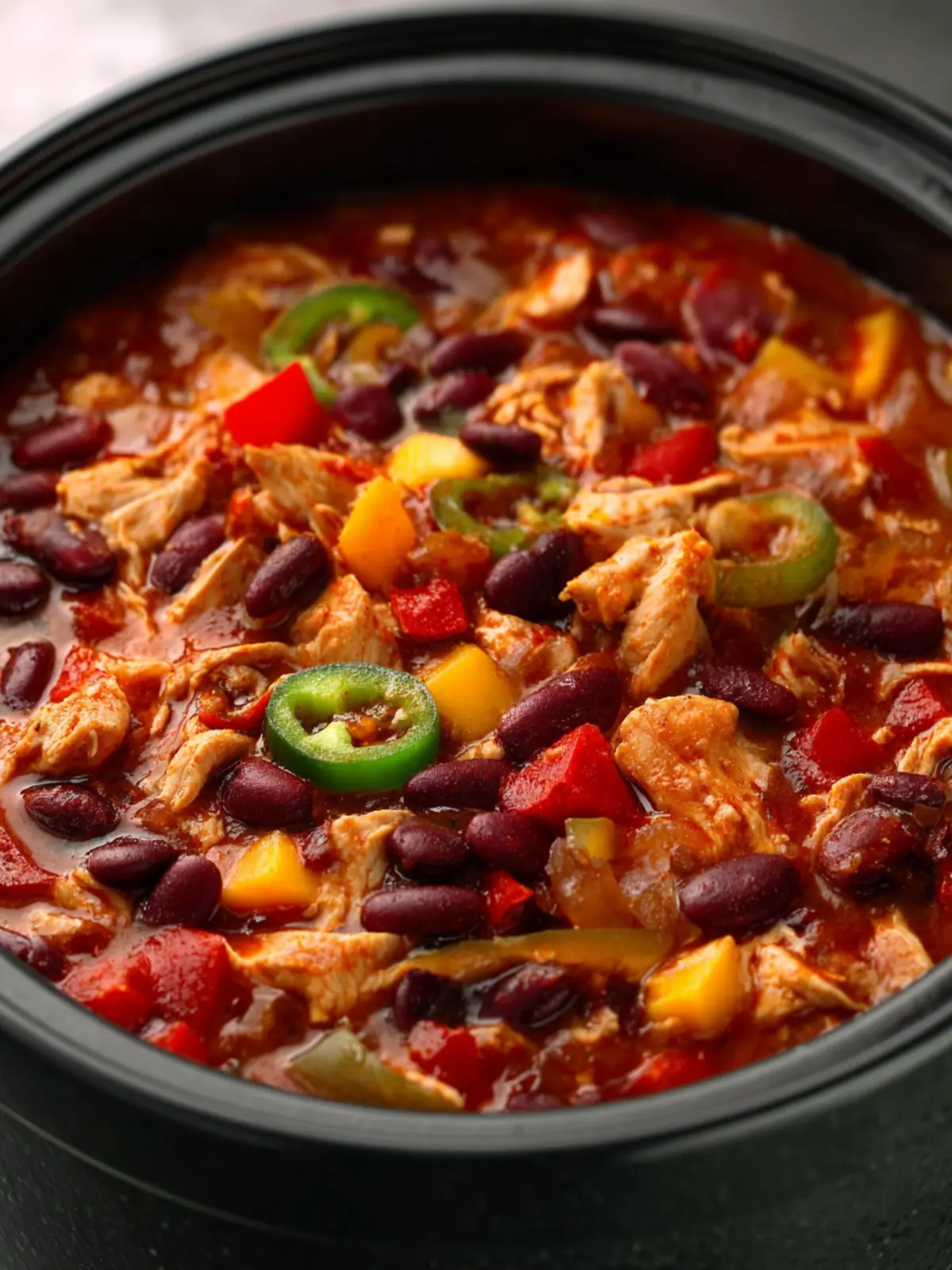 • Simmer: Bring the chili to a gentle boil, then reduce the heat to low. Cover and let it simmer for 20–25 minutes, or until the chicken is fully cooked and tender.
