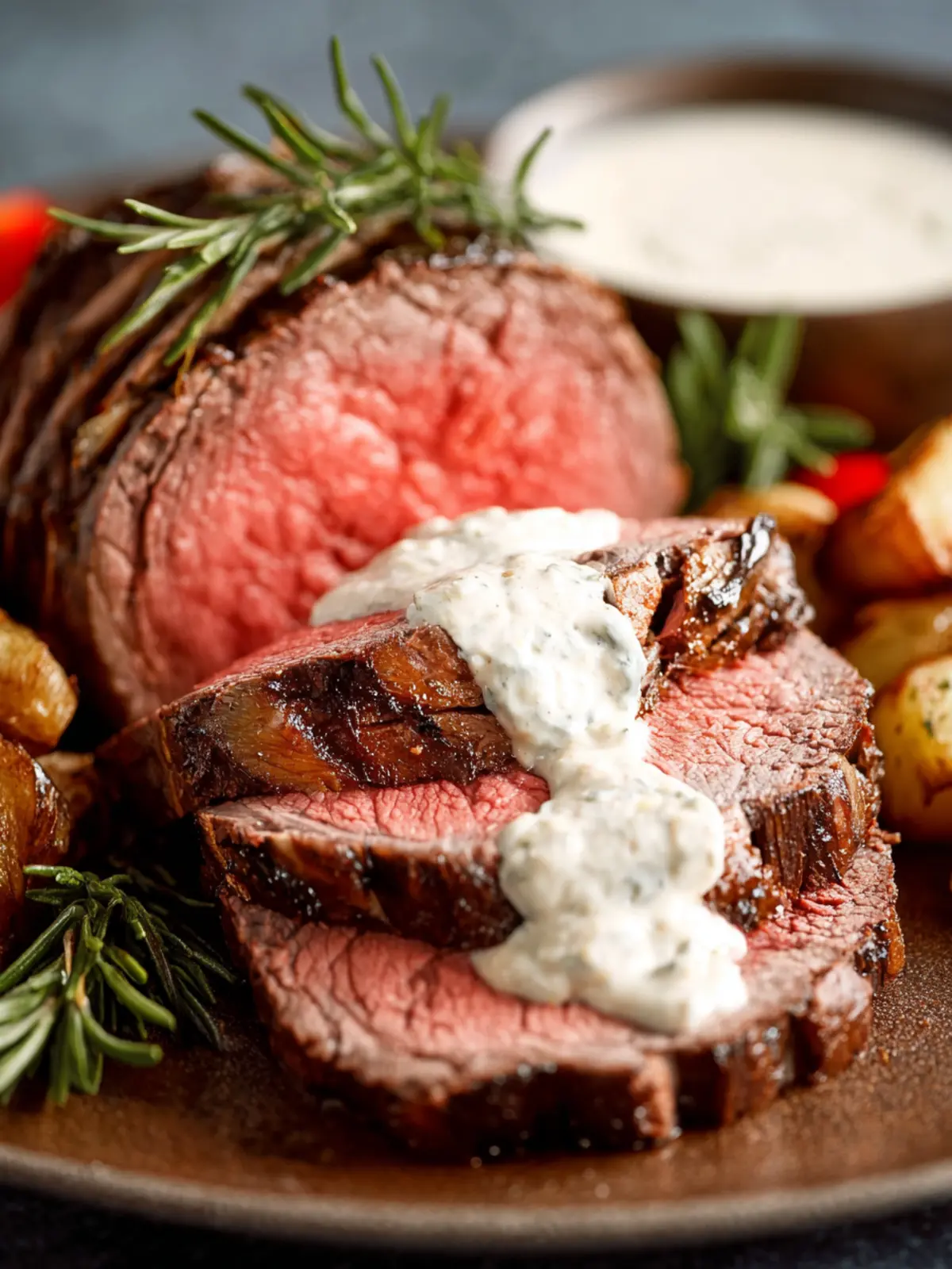 What sets this roast beef tenderloin apart is its combination of rich flavors. The savory herbs and spices create a delightful crust that enhances the beef’s natural taste, while the horseradish sauce adds just the right amount of zing. It’s a taste sensation that elevates any meal from ordinary to extraordinary.