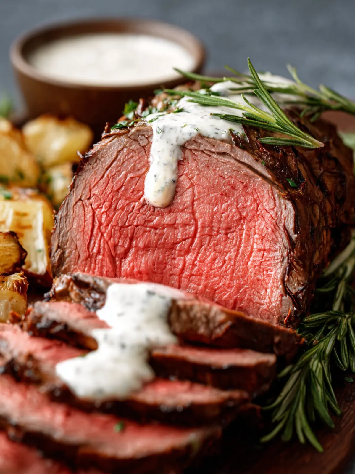 Pairing Hint: The horseradish sauce not only complements the beef but also cuts through the richness, providing a refreshing finish. Consider serving it alongside roasted seasonal vegetables for a complete holiday feast.