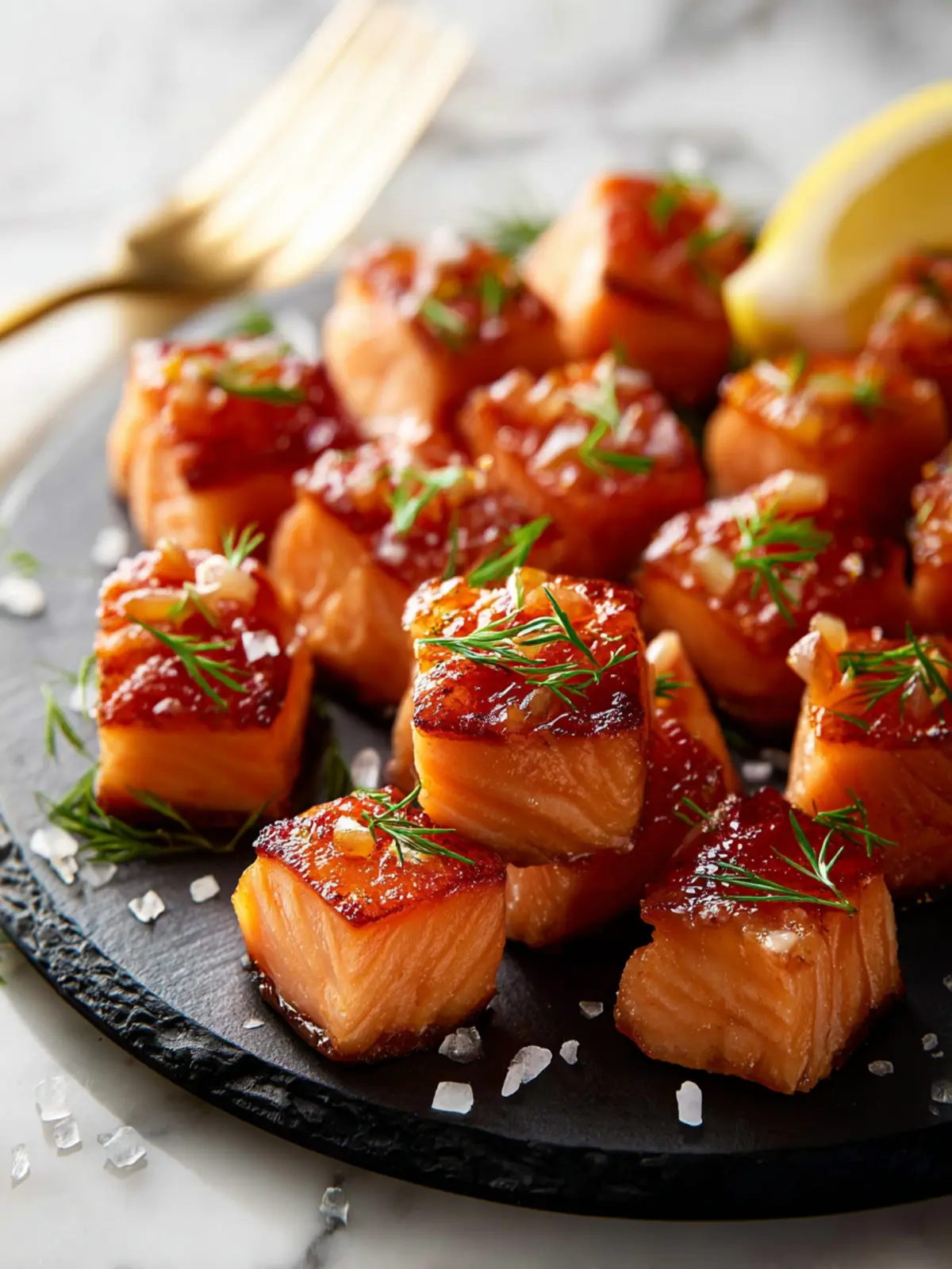 Consider plating your salmon bites on a slate board or rustic wooden platter for a farm-to-table vibe. Garnish with fresh herbs like dill or parsley, and don’t forget a sprinkle of lemon zest for that pop of color and added freshness.