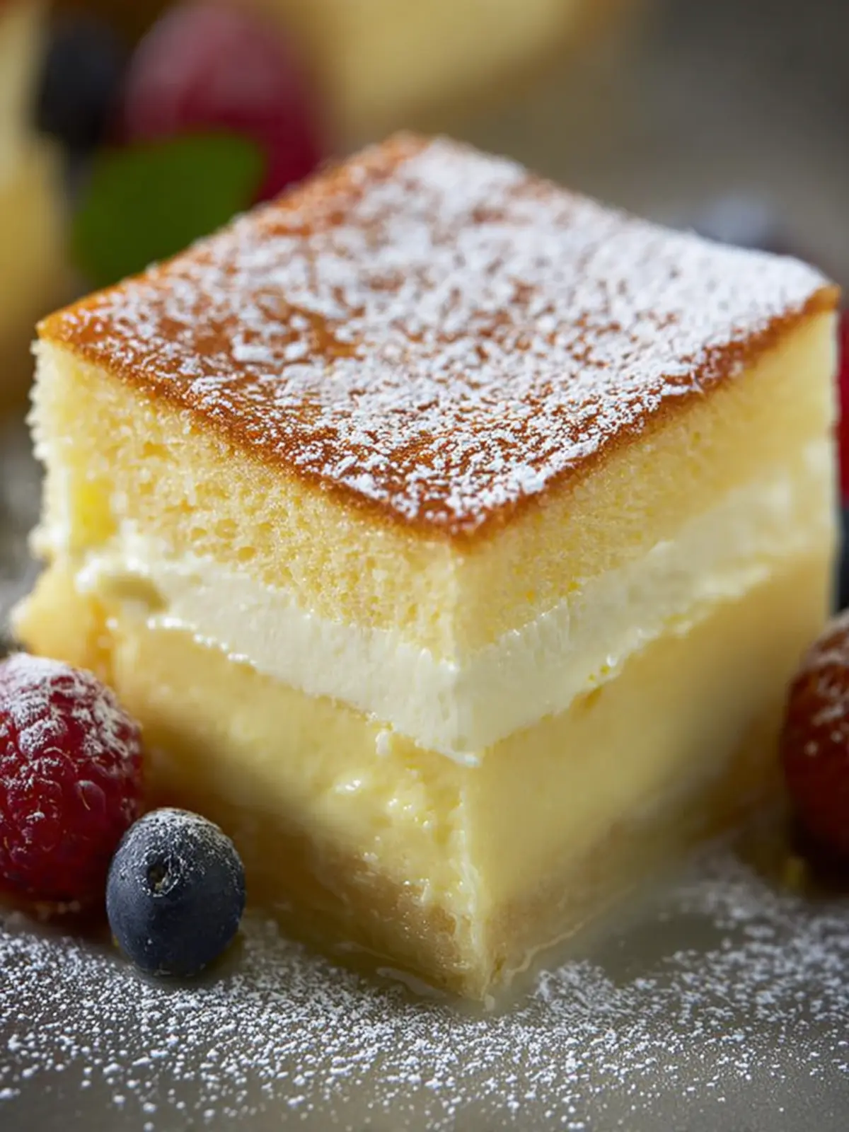 The best part? Making this cake can be a surprisingly rewarding experience! Watching the batter morph into its magical layers is like witnessing a culinary trick unfold right in your oven. Plus, it’s versatile enough to be enjoyed on its own or served with fresh fruit, whipped cream, or a drizzle of chocolate.